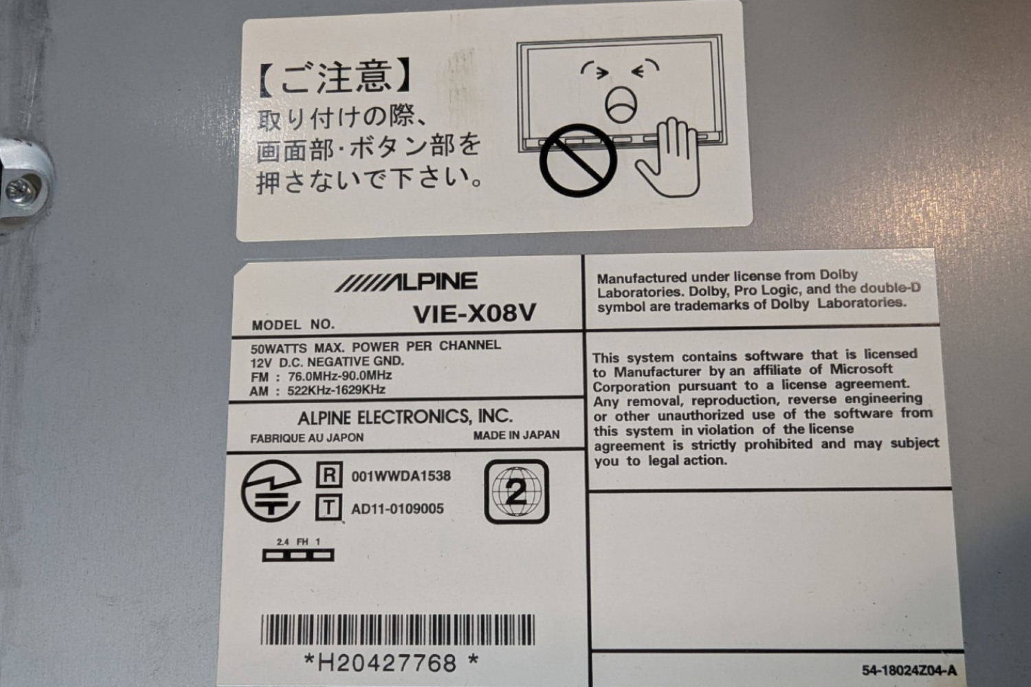 OEM-номер производителяAlpine VIE-X08V